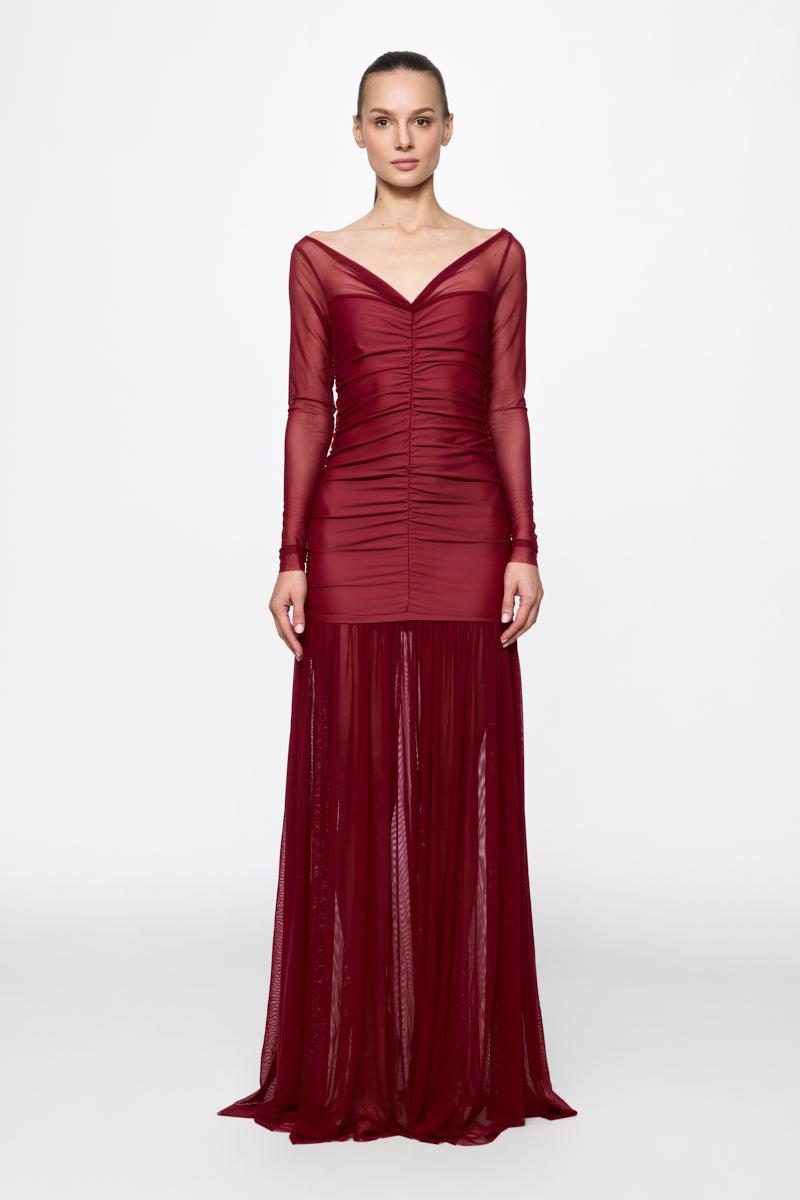 Ein luxuriöses Kleid mit eleganter Silhouette, gefertigt für einen stilvollen und selbstbewussten Auftritt.